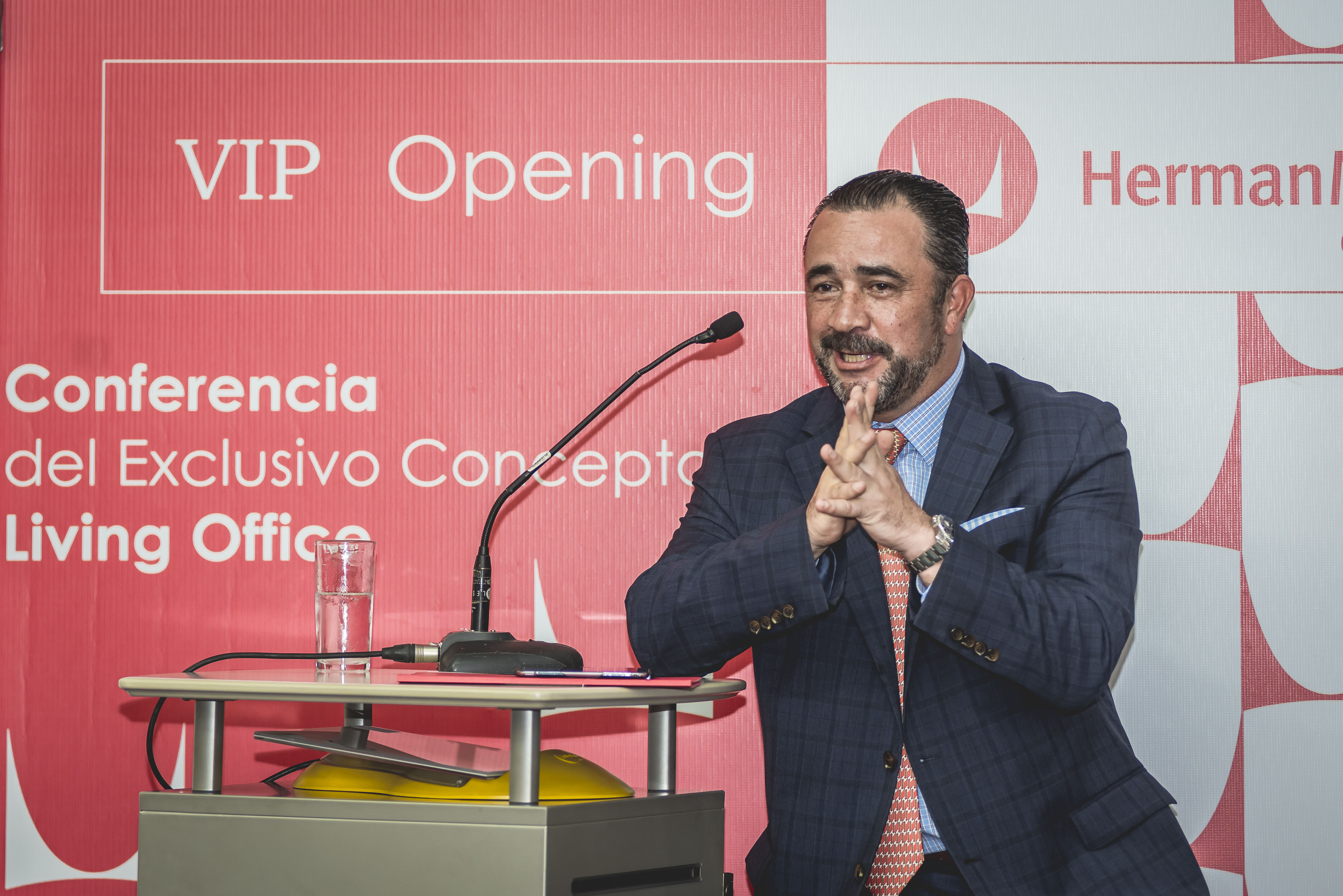 Como parte del evento, en el corazón de Design Center, se impartió una breve conferencia por parte de Diego Cervantes en la que explicó el concepto de Living Office; este concepto resalta la importancia de tener oficinas más humanizadas, con una buena planeación donde se contemplen espacios para la colaboración de diversas formas, donde la variedad y la opción priva con lugares privados y/o semi privados, todos pensados según las actividades que se desempeñan en las empresas.